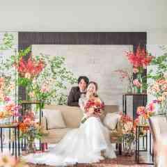 白とブラウンを基調としたシンプルな会場をお二人らしく自由にアレンジ!!結婚式直前の先輩カップルコーデを是非ご参考に!