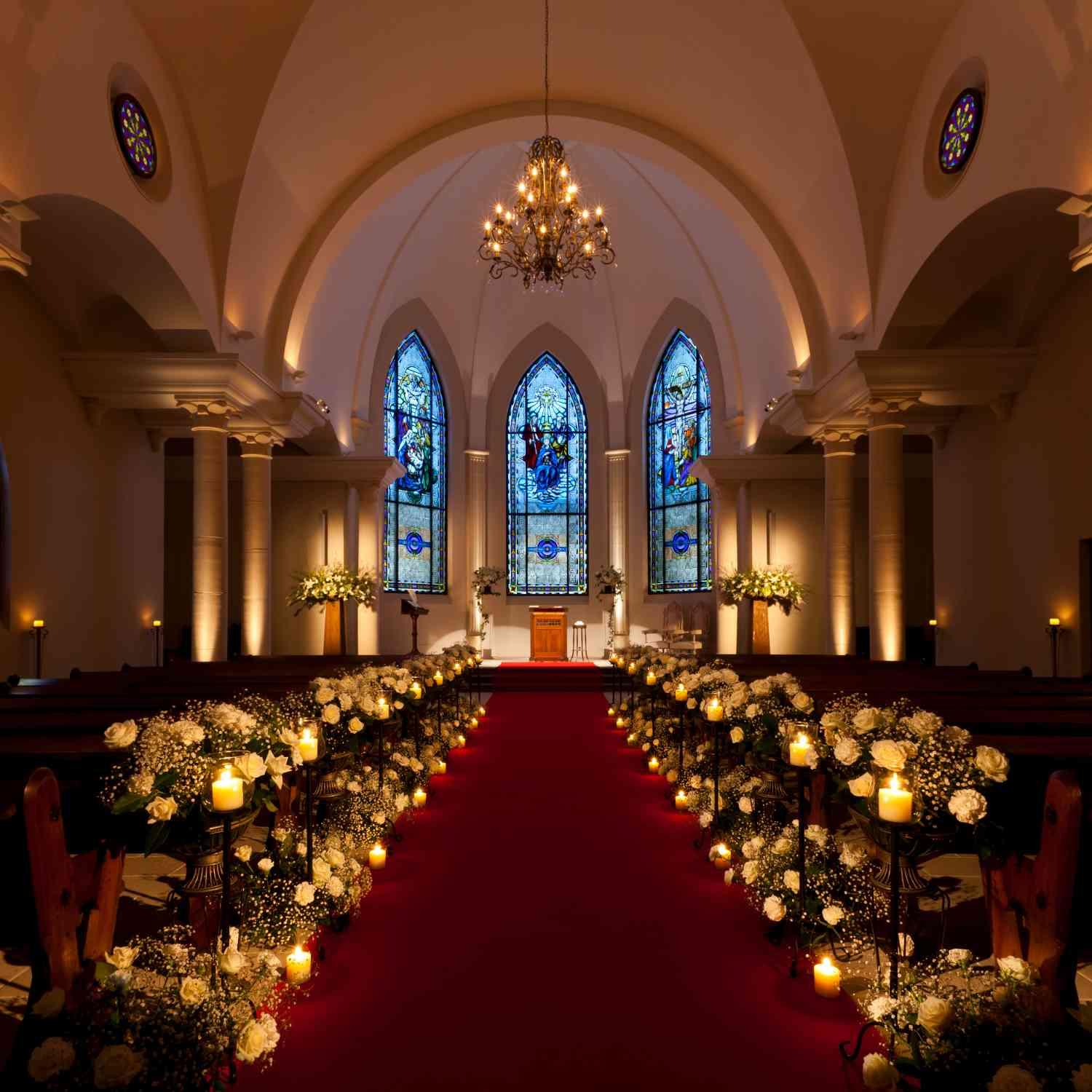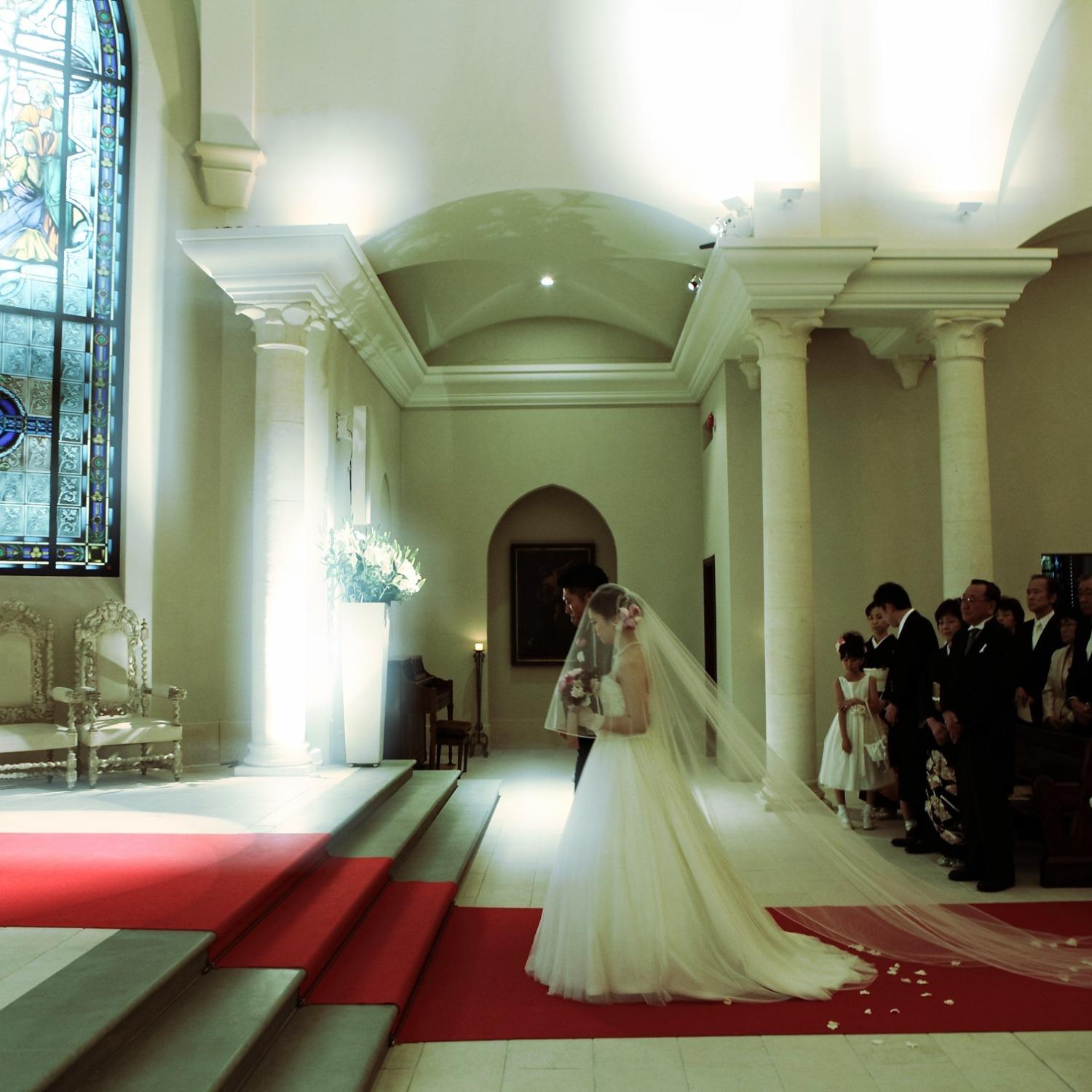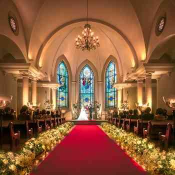 教会式 *札幌市内を一望できる正式な教会 赤いウエディングロードとステンドグラスが圧巻 退場シーンではお2人が光に包まれていく演出も! |