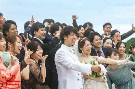 パーティのゲスト全員を呼んで挙式が出来たので挙式でのウエディングドレス姿でも友人たちに祝ってもらえた。市内を一望出来るテラスでは、たくさんのゲストと写真を撮影出来る時間が30分間。挙式後からゲストみんなと交流が出来、パーティ前にゆっくりお話し出来る時間を設けられたのは他にはない良い過ごしかたでした。