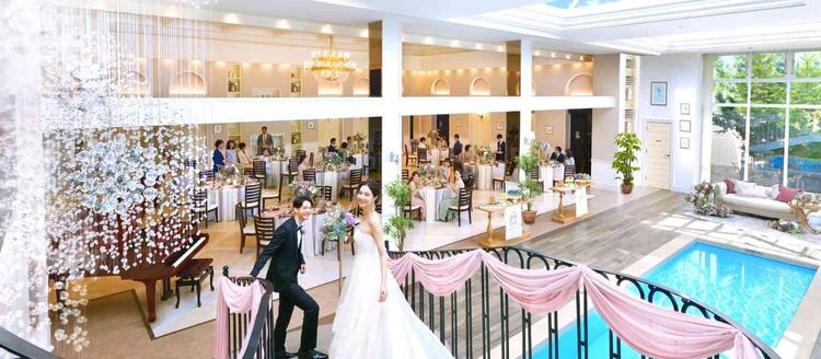 季節や天候を気にせず、開放的な空間でオリジナリティ溢れるひとときが過ごせる。貸切ならではの自由さで、時間も、空間も、思いのままに使える贅沢な邸宅。幅広い演出やゲストへのおもてなしが叶うと好評。ふたりならではのパーティを叶えよう!