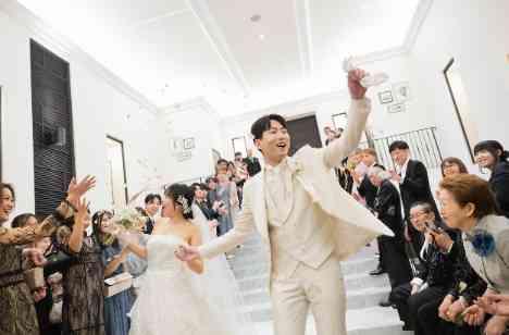 感動的な挙式から大階段でフラワーシャワー