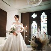 スワロフスキ製シャンデリア×実際の修道院で使われていたステンドグラス。洗練されたシックで落ち着いた上質な空間。唯一無二の対面式チャペルでは王道のキリスト教会式もしくは、アットホームな人前式が対応可能。