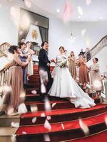 挙式を終えたふたりを大階段でゲストのフラワーシャワーと笑顔が包む。 光と歓声に彩られたこの瞬間は、挙式の余韻をさらに華やかにし、家族や友人に見守られながら歩む一歩一歩が、一生の宝物となる特別なひとときとして刻まれる・・・・