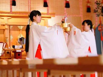 和婚ならでは巫女の舞と琴の生演奏が響く