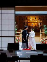 - 天窓から降り注ぐ柔らかな光と総檜造りの荘厳な空間が魅力の天星殿。和の美しさに包まれ、ご両家やゲストにとっても一生の思い出に残る特別な神前式を叶えられます。琴の生演奏が響く中、厳粛でありながら温かみのあるセレモニーをお楽しみください!!
