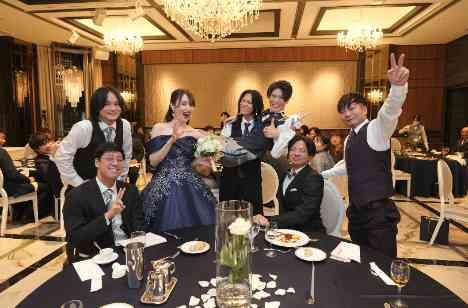 共通の行きつけのお店でオーナーが好きなサッカーチームが同じだったことから会話が弾み、今日に至ったというおふたり。ご縁のきっかけとなったサッカーチーム『コンサドーレ』をテーマに、ウェルカムスペースやゲームの景品にも取り入れています。思い出の始まりを感じながら、ゲストの皆さまと楽しい時間を過されました。