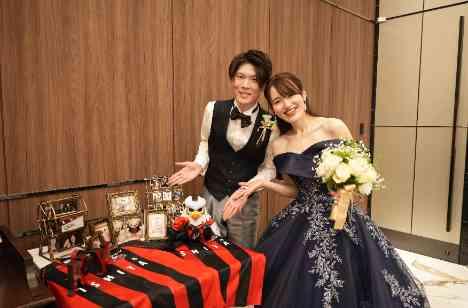 共通の行きつけのお店でオーナーが好きなサッカーチームが同じだったことから会話が弾み、今日に至ったというおふたり。ご縁のきっかけとなったサッカーチーム『コンサドーレ』をテーマに、ウェルカムスペースやゲームの景品にも取り入れています。思い出の始まりを感じながら、ゲストの皆さまと楽しい時間を過されました。