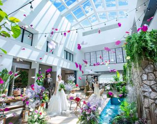- パーティ会場には自然光満ちる屋内ガーデンテラスを併設。ゲストとの写真撮影や会話が盛り上がります♪