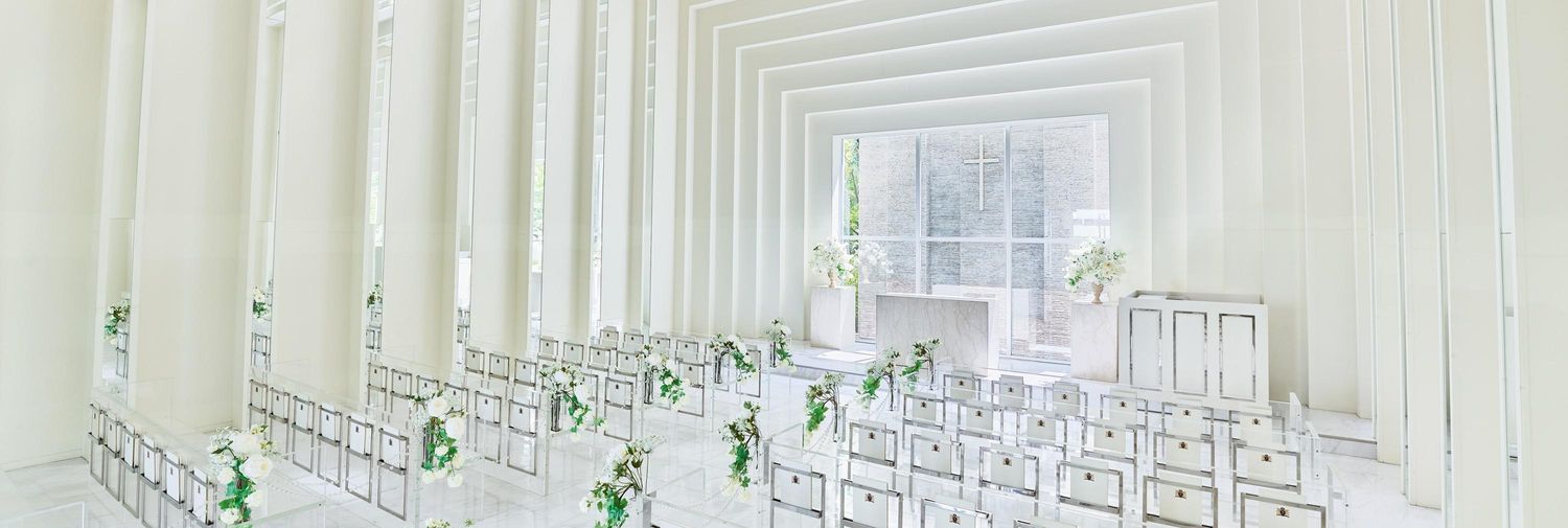 光が注ぐ純白のチャーチは、ウエディングにふさわしい空間。自然光がおふたりを美しく照らしかつてない感動的なセレモニーでゲストを魅了します。