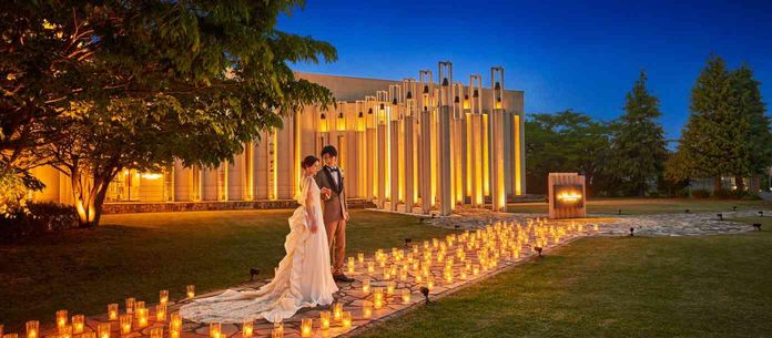 ライトアップで浮かび上がる夜の外観もナイトウエディングにぴったり!