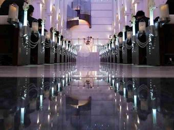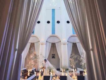 「星空のチャペル」をモチーフに青色の光が降り注ぐ幻想的な空間。