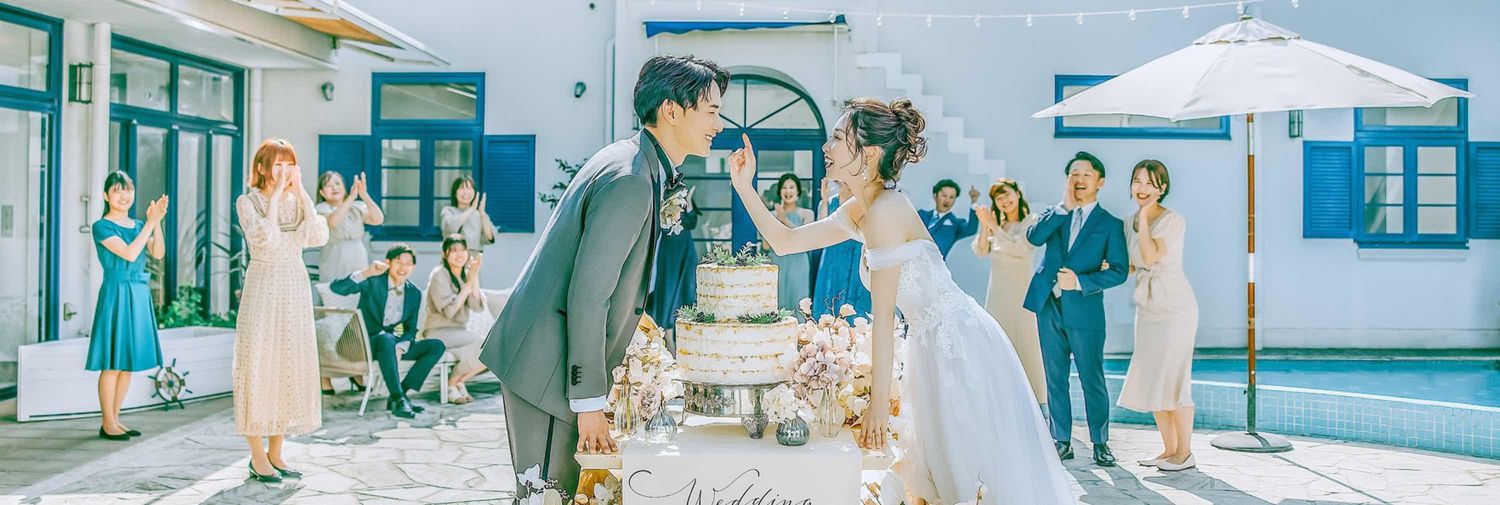 エーゲ海の風を感じる仙台の貸切邸宅ウエディング。2つのガーデンに囲まれた開放的な空間で、BBQやデザートブッフェも楽しめます。