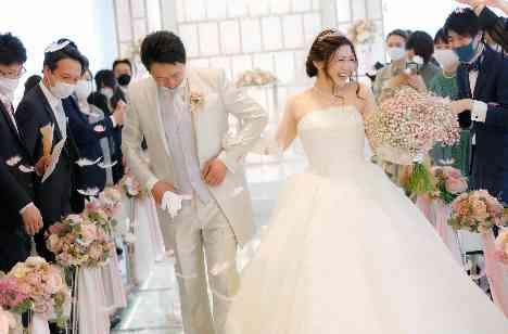 挙式後のセレモニーと言えばフラワーシャワーが定番ですが、ShunさんとSakiさんは、皆様から祝福の羽が降り注ぐフェザーシャワーでのご退場♪実は、フェザーシャワーには「天使の象徴である羽で悪魔を追い払い、2人を幸せへと導く」という素敵な意味があるんです。ふんわりと舞う柔らかなピンクの羽のシャワーがおふたりの雰囲気にとってもピッタリの素敵なセレモニーでございました!