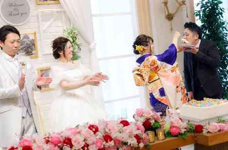 ご披露宴が始まると、いよいよShunさんとSakiさんの初めての共同作業のお時間へ。ケーキカットが結び甘い甘い一口が交わされると、いつもお世話になっているSakiさんの妹夫婦様にも感謝と幸せを届けるべく、サプライズでおすそわけバイトにご参加いただくことに☆彡ShunさんとSakiさんに負けないくらいの愛情いっぱいの一口を交わすおふたりのお姿に会場中がほっこりとした雰囲気に包まれました♪
