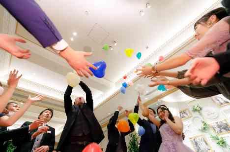 装いも新たにゲストの皆様の前を姿を現したShunさんとSakiさん。かわいらしさもパワーアップし、ゲストの皆様にも、よりご披露宴を楽しんでいただけるようにと行ったのはスパークバルーン!はじけたバルーンはゲストの皆様へ驚きと楽しさを運びお祝ムード一色に。当たりの風船をキャッチしたゲストにはプレゼントのお渡しもあり、おふたりとゲストの皆様の距離がより縮まったご様子が印象的でした。