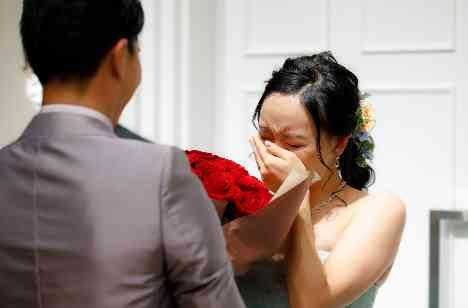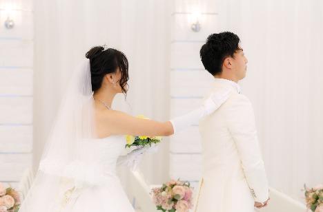 ご結婚式当日まで、Yutoさんに当日のお衣装を内緒にしていたEriさん♡人生で一番美しいウエディングドレス姿を、最愛のお相手であるYutoさんに1番に見てもらいたい・・・とのことで、チャペルでのファーストミートを行いました。ご対面の瞬間はそれぞれがお相手様を想う気持ちが重なり感動的な雰囲気となりました。