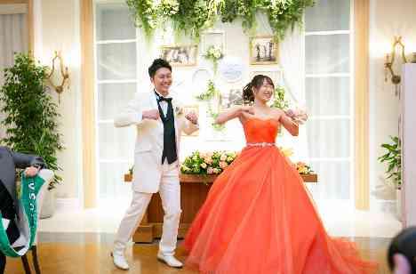 お色直しのご入場も普通じゃつまらない!ということでダンスをご披露!ご結婚式当日に向けてお時間を作って、一生懸命練習をしてくださったおふたり。上手に踊れるか直前までとっても心配されてましたが、いざ本番を迎えると、とびきりの笑顔で完璧な踊りを見せてくださり、こゲストの皆様からも大歓声で迎えられた再入場となりました☆