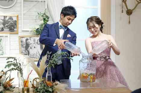 大好きなゲストの皆様と一緒に楽しい思い出を作り上げたいと取り入れたのがフルーツポンチラウンドの演出!みなさまのテーブルを回りフルーツを集めたボトルに、仕上げとしてYoshiakiさんとAkariさんの手でソーダを注いでいただきました♪完成したフルーツポンチはゲストの皆様に振舞われ大好評!楽しくおいしい演出とりました。