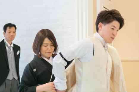 挙式の入場シーンではTakuyaさんの親御様にお手伝いいただきジャケットセレモニーを。お母様にジャケットを着せていただき、お父様にはネクタイを直していただきました。お支度が結び、バージンロードを歩きだすTakuyaさんを送り出す親御様の表情はとても優しく、セレモニーの始まりの瞬間をゲストの皆様もあたたかく見守ってくださりました。