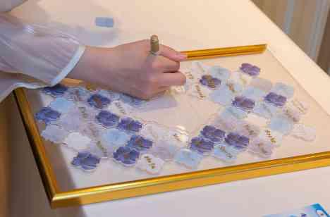 いつも優しく朗らかなNaokiさんとMizukiさん。おふたりがイメージしたのはゲストも自分も一緒にわいわい楽しめる・アットホームなパーティー♪ 結婚証明書となるウェディングタイルにゲスト全員からサインをいただいたり、ドレス色当てクイズのペンライトを披露宴の入場シーンで振っていただくなど、みんなでつくりあげることを意識された素敵な1日には、ゲストが楽しめるサプライズがたくさん隠されていました…♡