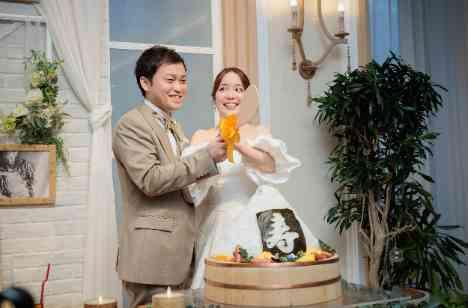 各テーブルに配られた小さなおにぎり。司会者より「あたりがあります♪」とアナウンスが!ゲスト皆様参加のロシアンおにぎりがスタート! あたりには梅干しが入っており、お二人の「いただきます!」の掛け声とともに皆様一口!見事当たった方にはお二人よりプレゼントが♪ ゲスト参加の演出で大盛り上がりとなったロシアンおにぎりでした☆