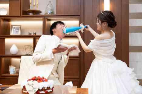 お二人のケーキ入刀&ファーストバイトがスタート♡ ご新郎様の想いとともにご新婦様が一口!そしてご新郎様のファーストバイトへ!するとご新婦様が手にしたのはなんとバット型のスプーン!!たくさんのケーキをのせてご新郎様に「あ~ん」♡ ご新婦様からの愛情をしっかりとキャッチしたご新郎様♪ 思いがけないスプーンの登場に会場も大盛り上がりとなりました☆