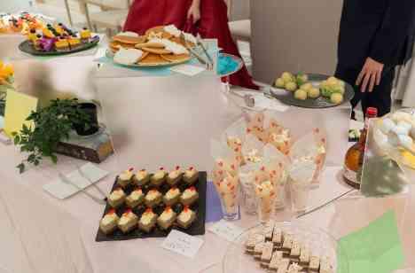 ご披露宴の後半にゲストの皆様にサプライズでご用意されたデザートビュッフェ。おふたりからおもてなしの想いが込められた甘いスイーツのプレゼントは、世代を問わずとても好評でした♡ またビュッフェの時間は、新郎新婦様もフリータイムとして自由に会場内を歩かれたり、ソファーを使って写真撮影をされたりと、ゲストとの時間もたっぷりと楽しんでいただけたようでした…!