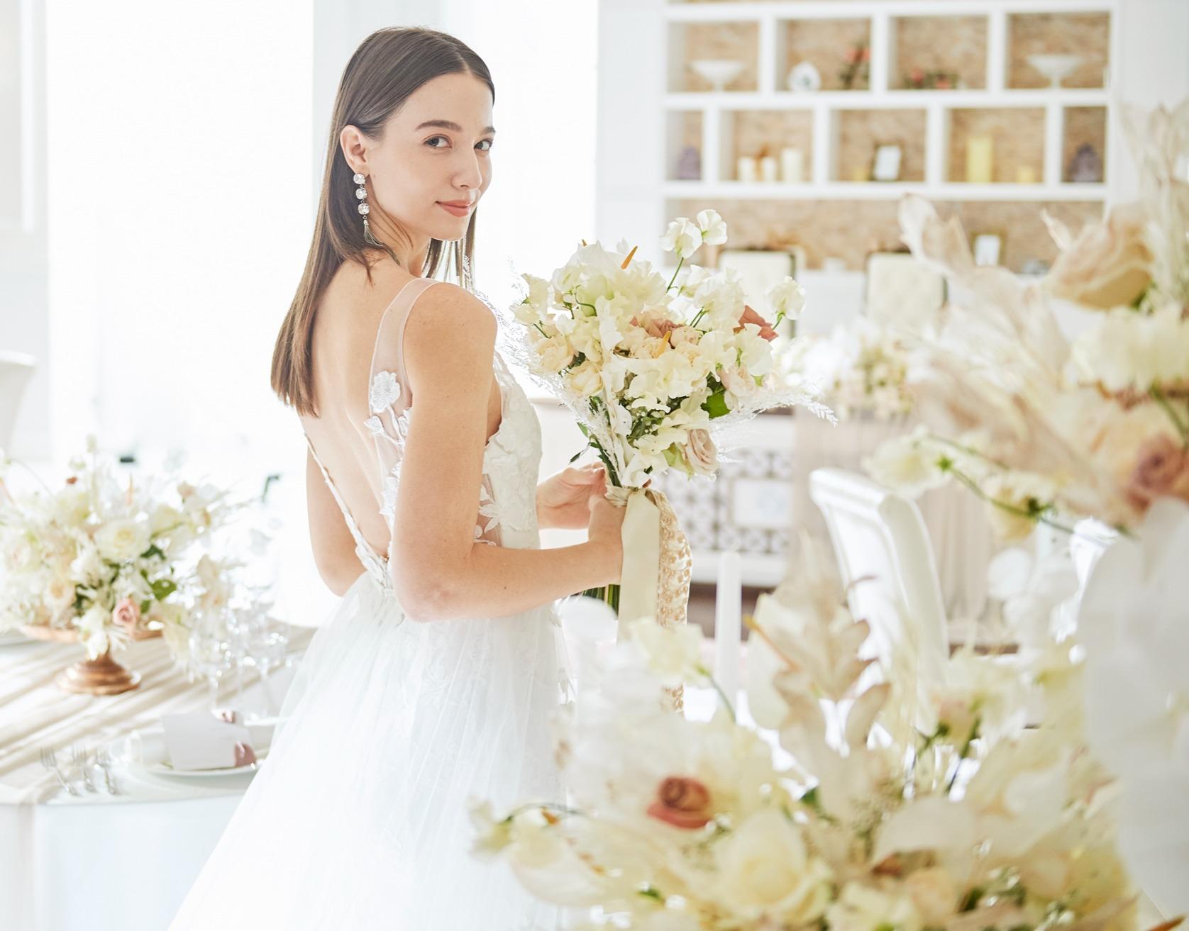花嫁様の「着てみたい」「似合うか知りたい」を叶える、特別なフェアを開催。実際にドレスをご試着いただき、素材・シルエット・動いたときの美しさまで、写真では分からない魅力をご体感。詳しくはフェアをチェック
