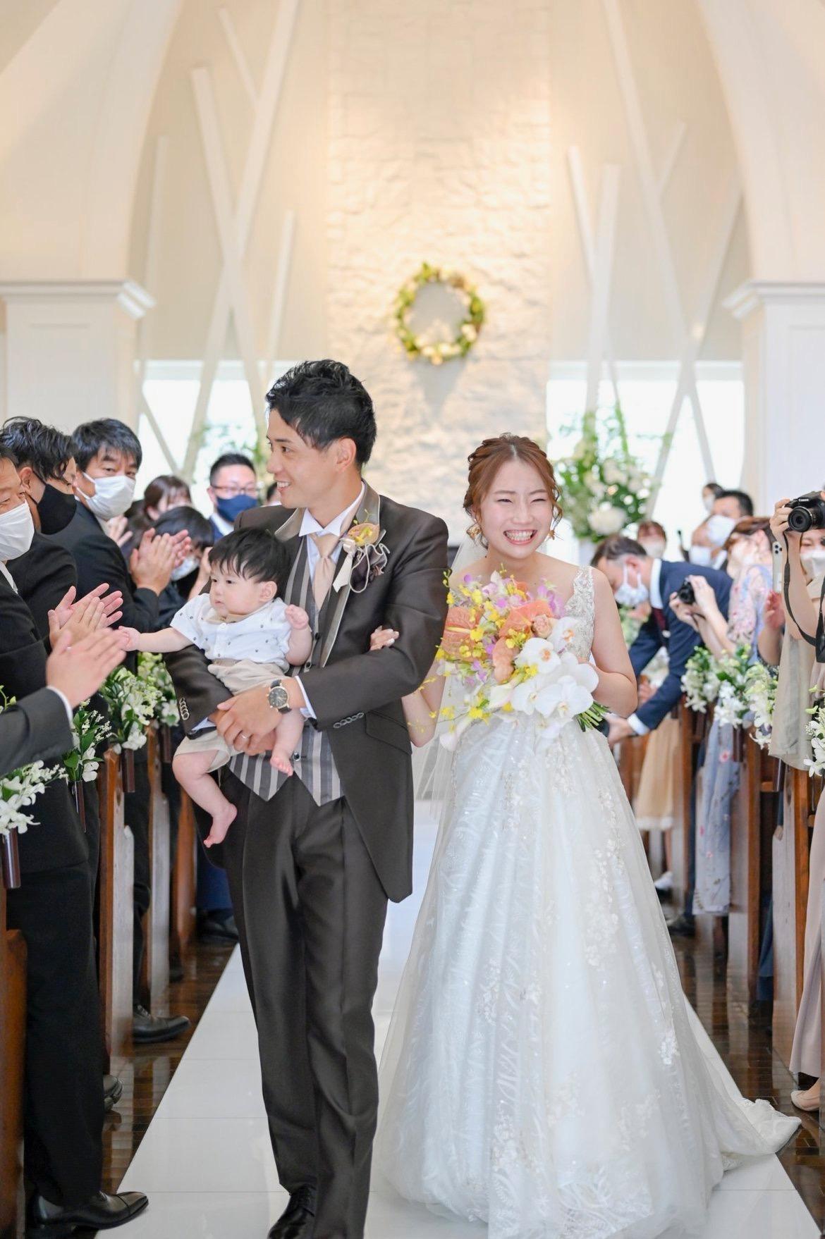 挙式後は、アフターセレモニーとしてフラワーシャワーが大人気!緑に囲まれ開放的な空間でゲストからの祝福を。貸切なので全館内BGMの変更が可能!おふたりのお好きな曲でアフターセレモニーを盛り上げます♪