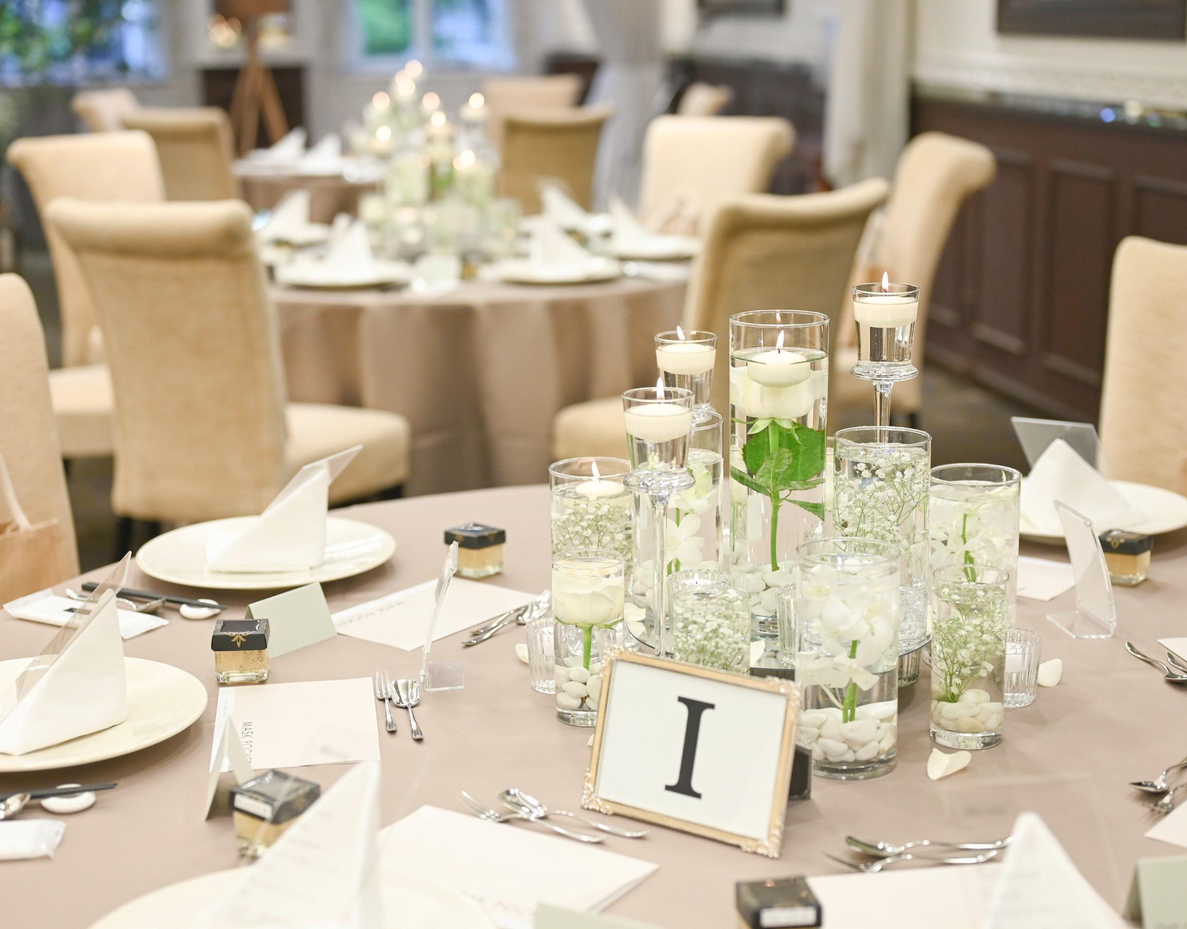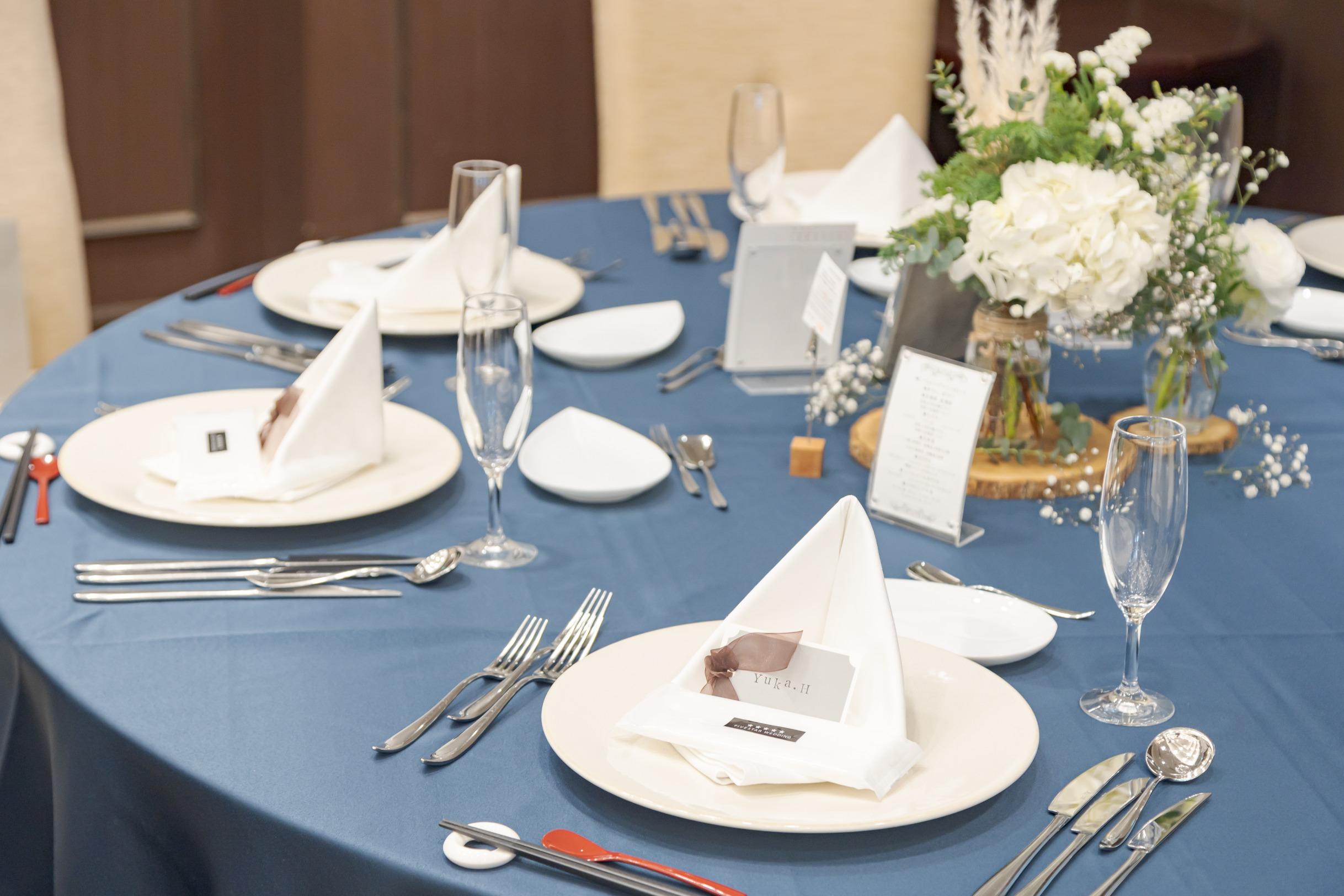 テーブルクロスやお花は自由自在!おふたりのイメージに合わせてコーディネートが可能です!スタイリッシュな印象からフェミニンな印象までコーディネーターがご提案をさせていただきます♪