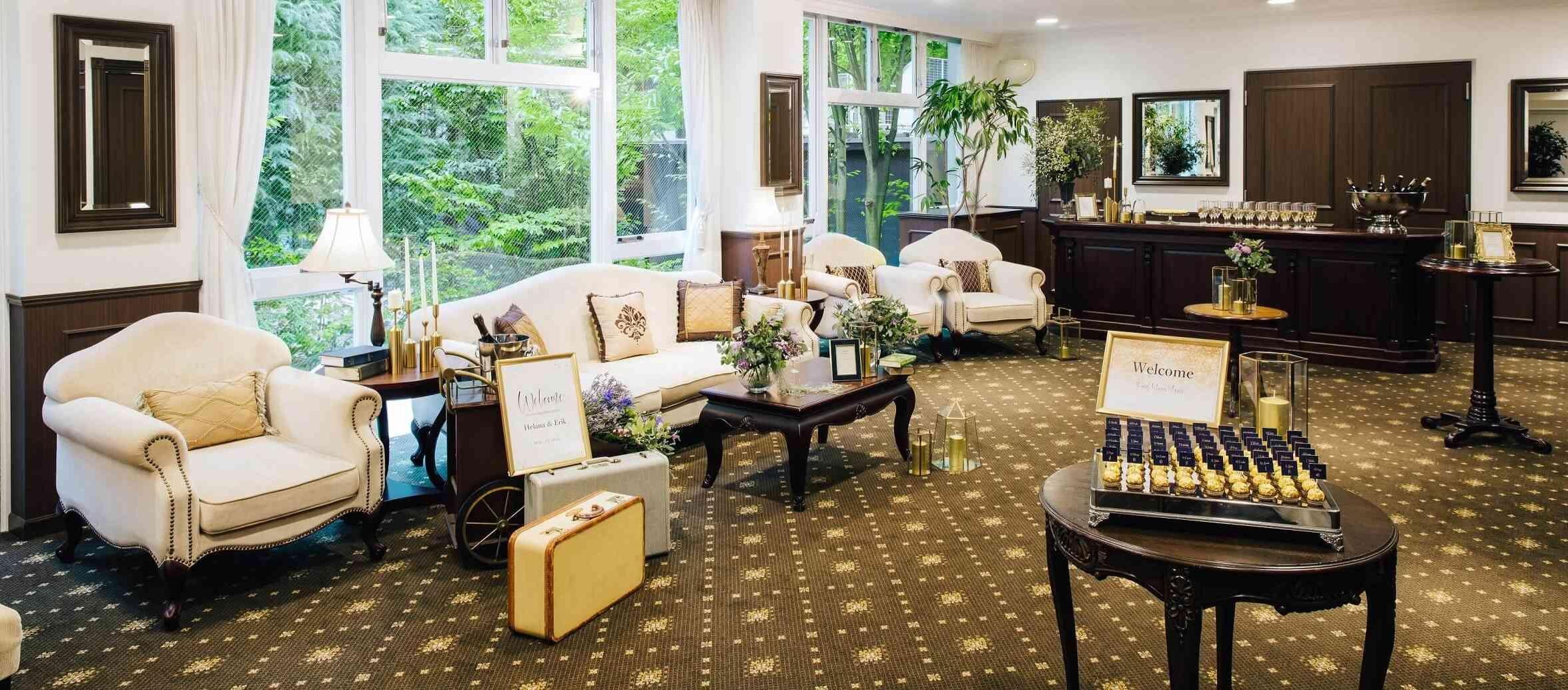 1階のロビーにはガーデンが隣接しており、緑を楽しめるだけでなく夜のナイトウェディングも幻想的な雰囲気に。 ゲストも参加したことの無いようなフォトジェニックな瞬間を楽しめます。