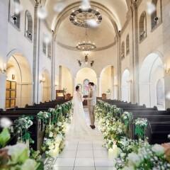 【中世欧州の教会を再現した美しいチャペル】パイプオルガンやフルートの生演奏が天井高のチャペルに響き渡り感動的な挙式に。牧師先生に導かれ行う誓いの儀式には思わず涙すゲストも。フェザーや雪の挙式演出も必見