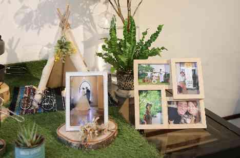 披露宴会場ではゲストとの懇談に重点を置き、テーブルラウンドフォトサービスやエンゼルブーケなどアットホームな披露宴に!カラーコーディネートではトレンドでもあるナチュラルカラー・グリーンカラーをふんだんに使用して自然らしさ・オリジナリティーを表現しました。