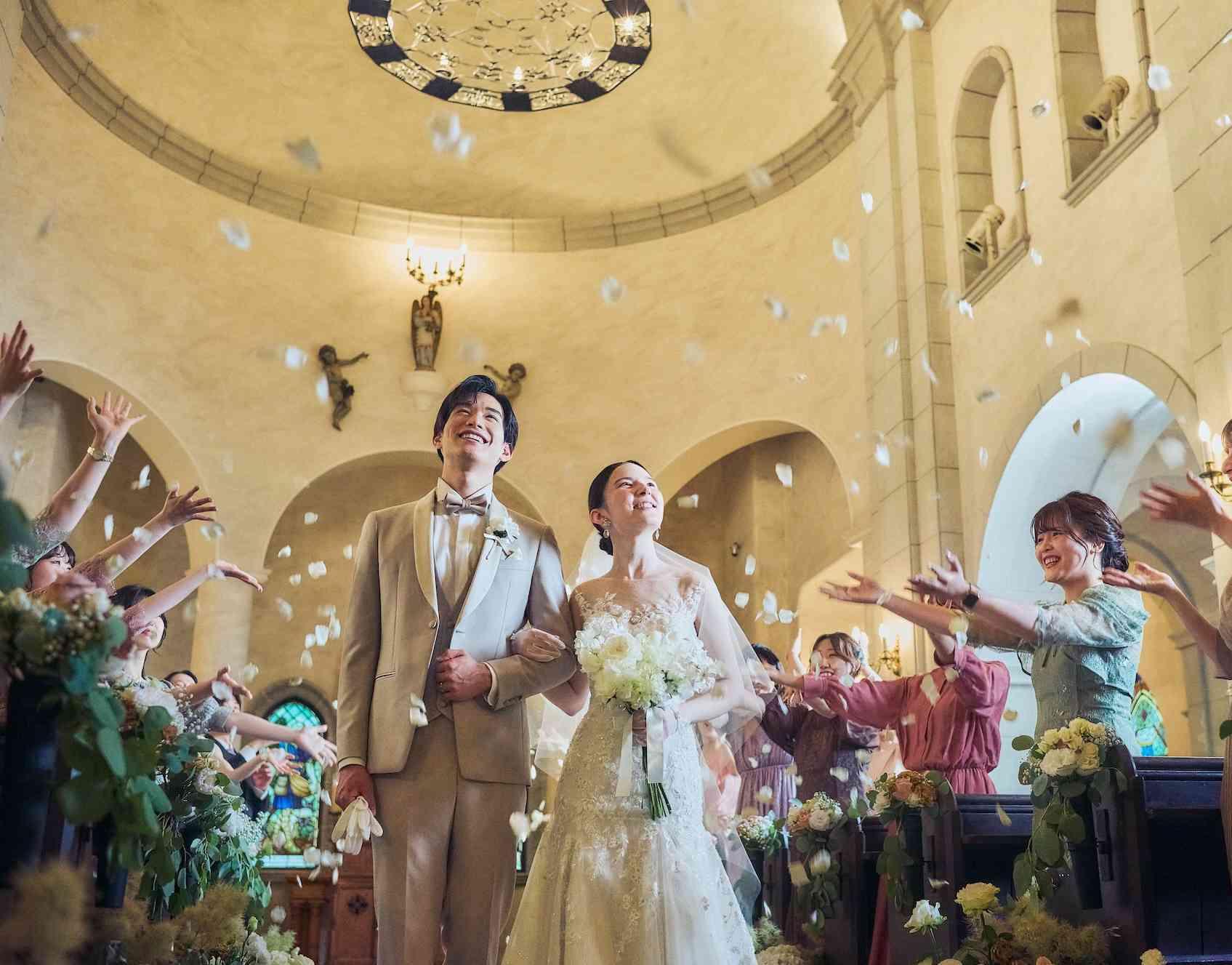 ホテルモントレ仙台が誇るフォトジェニック・ロケーション。挙式後にはフラワーシャワーなどダイナミックな祝福の演出でお二人のウェディングに華を添える。前撮りも大人気!二人だけの記念のフォトを残して!