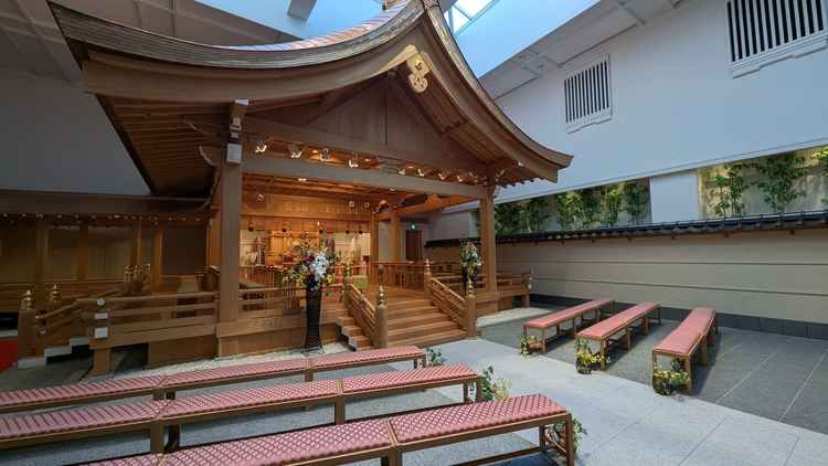 ホテル内とは思えない立派なチャペルがあって、日付と名前を刻めるプレートが素敵だと感じた。 神殿があるのも想定外で、しかもとても立派。屋内で天候も気にせず、それでいて神社へ赴いたかのような立派な神殿でお参りできるのはかなり魅力的だと感じた。