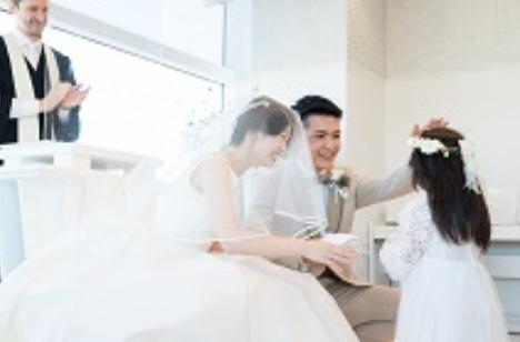ご両親への感謝を伝えるチャペルムービー。Mさんはお父様とお母様と3人で観たいとご希望され、親子3人での挙式入場が叶い、とても感動的な雰囲気に包まれました。 そして、かわいらしいリングガールやフラワーガール・ボーイの登場で会場は和やかムードに! おふたりらしい、和やかな雰囲気で永遠の愛を誓われました。