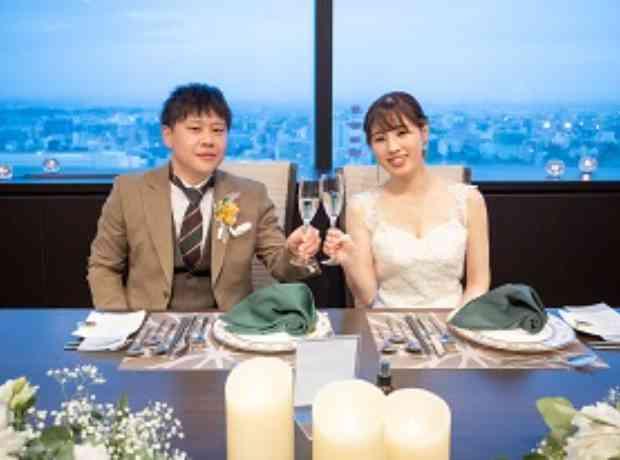 最初にご来館された時から、高層階からの夜景をゲストに見てほしいと、ナイトウェディングをご希望されていたおふたり。当日は、チャペルのバージンロードにキャンドルを灯し、幻想的な雰囲気を演出しました。 Tさんのお母様にベールダウンをしていただき、エスコートはTさんの弟様にお願いしました。 展望台でのセレモニーでは、ゲストの皆様からのお祝いの声が飛び交い、とても嬉しそうなおふたりでした。