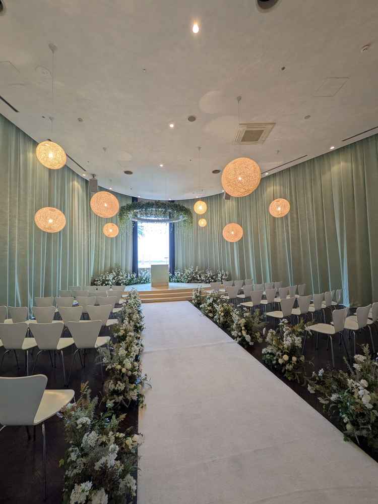 挙式会場はイメージ通り、見学時は雨天だったが晴天ならばキレイだと感じれた。食事会会場の雰囲気が良く、浜名湖が見える会場が良い。