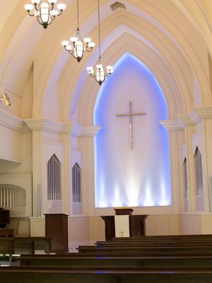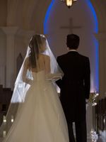 ゲストに見守られながら歩むバージンロードは10m以上、音色が響き渡る天井高8m超の荘厳な空間での大聖堂なら、誰よりも印象深い花嫁に。