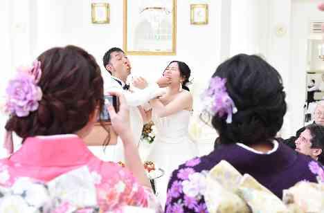 乾杯後は、誰にも遠慮することなくご家族様の撮影会がスタート。ご両親と、ご兄弟と、ご家族ごとに皆さんとても楽しそうにポーズを変えながら、沢山写真を残していただきました。ケーキセレモニーでは、ケーキが苦手なお二人にシェフ特製のタルトをご用意し、同時にファーストバイトを行い、ご親族様からもわぁ!という驚きと、頬張るお二人の姿に笑顔が溢れていました。