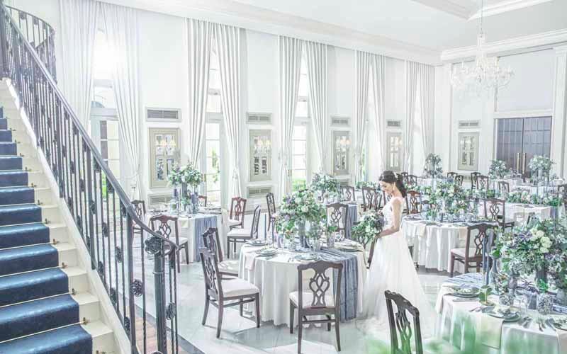 白基調の会場のため、おふたりのお好みのコーディネートが可能!披露宴会場内には大階段も併設。ゲストからの祝福に包まれながらの入場演出や、サプライズ感のあるガーデン入場など、多彩な演出が可能です!