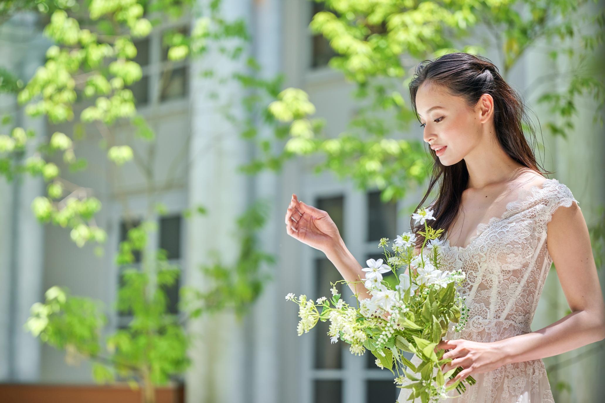 バルーンリリース、デザートブッフェ等ゲストと一緒に過ごせる場所としても人気。緑豊かな木々を背景に、白いドレスがより一層写真映え!披露宴後に1時間延長しガーデンで余韻を楽しむアフターパーティーも可能◎