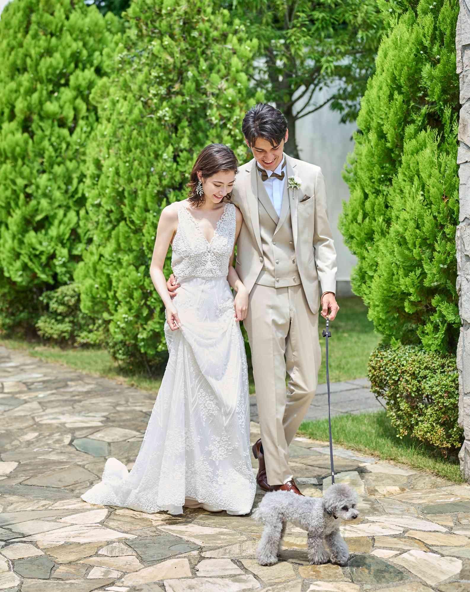 ガーデン付貸切邸宅を貸切可能だからこそ、挙式から披露宴まで、1日を通して大切なペットと過ごすことができます。チャペルでのリングドッグや証明書への肉球署名はもちろん、ウエルカムドッグ等も可能です!