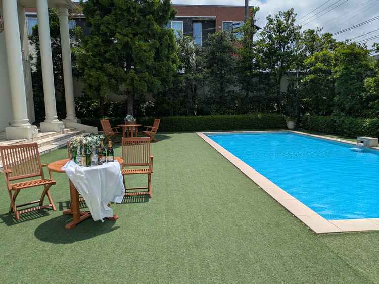 調度品がこだわっていて手を抜いていないかんじ、統一感のあるかんじはとてもよかった。期待していたプールは予想より小さく披露宴会場と切り離された感覚があった