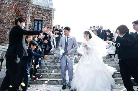 おふたりが選ばれた挙式スタイルは、教会挙式。 聖歌隊による生歌と生演奏をお気に召していただきました。 ご家族・ご親族様の仲も大変良く、大切な皆様の前で愛を誓う挙式に、本番前は緊張されていたおふたり。 しかし、皆様に温かく見守られながら、心温まるひとときとなりました。 フラワーシャワーで祝福を受け、最後は全員で記念写真を撮影し、ウエディングパーティーへと進まれました。