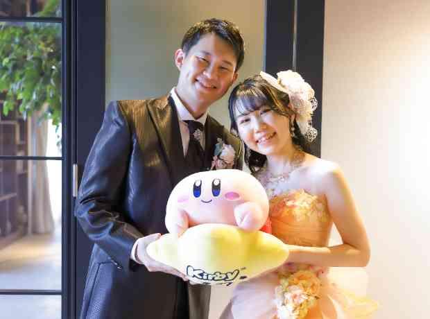 自分のことよりも相手を想う、優しいおふたり。そんなおふたりが選ばれたのは、ご親族のみで行うアットホームなウエディングパーティー。テーマは「カービィカフェのような空間」でした。 会場内は大好きなカービィを取り入れ、ナチュラルさを感じるテーブルコーディネートや、ちょうちょ柄のガーランドなどを飾り、自然あふれる空間でゲストの皆様をお迎えしました。