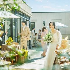 【自然光が降り注ぐパーティ会場】館内バリアフリー設計&キッズスペースの設置も可。ガーデンに繋がる大きな窓からは陽の光が降り注ぎます。天井が高く開放的な空間で貸切Wを体験!憧れの階段入場も叶う♪
