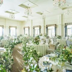 【自然光が降り注ぐパーティ会場】館内バリアフリー設計&キッズスペースの設置も可。ガーデンに繋がる大きな窓からは陽の光が降り注ぎます。天井が高く開放的な空間で貸切Wを体験!憧れの階段入場も叶う♪
