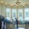 【挙式入場&演出体験】欧州から譲り受けたアンティーク調のステンドグラスがお二人を柔らかく包み込む全天候型のチャペル。フェア当日は、温かみのある空間でゲストに想いを伝える感動のチャペルムービーも体験◎