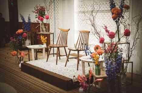 お花が大好きな新婦様のこだわりいっぱいのカラフルなメイン席に、ゲストの皆様も沢山写真撮影をされていたました。新郎様はお酒が大好きで新郎様セレクトの日本酒を皆様へふるまいました。実は装飾としてもお気に入りの日本酒の瓶を飾っていました。写真撮影やゲストの皆様と話す時間を大切されたアットホームな披露宴でした。